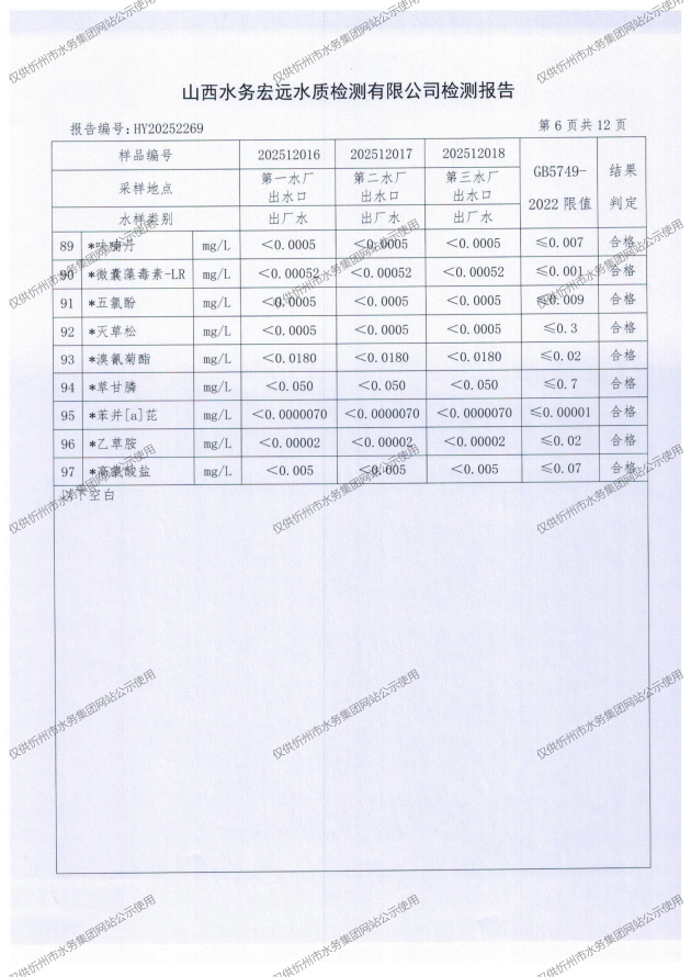 2025年忻州城區(qū)公共供水南水廠、三水廠、云中水廠出廠水97項水質(zhì)全分析